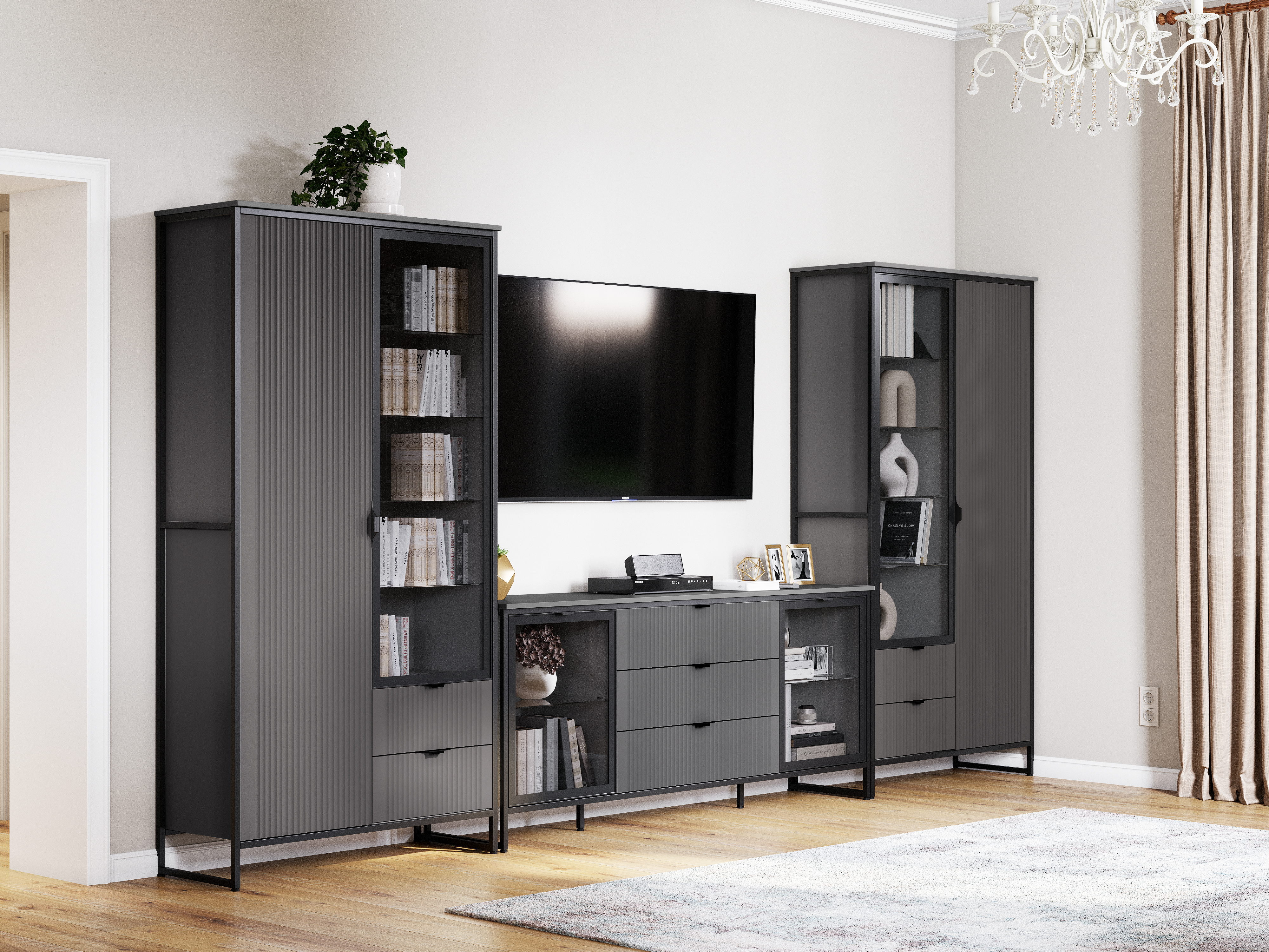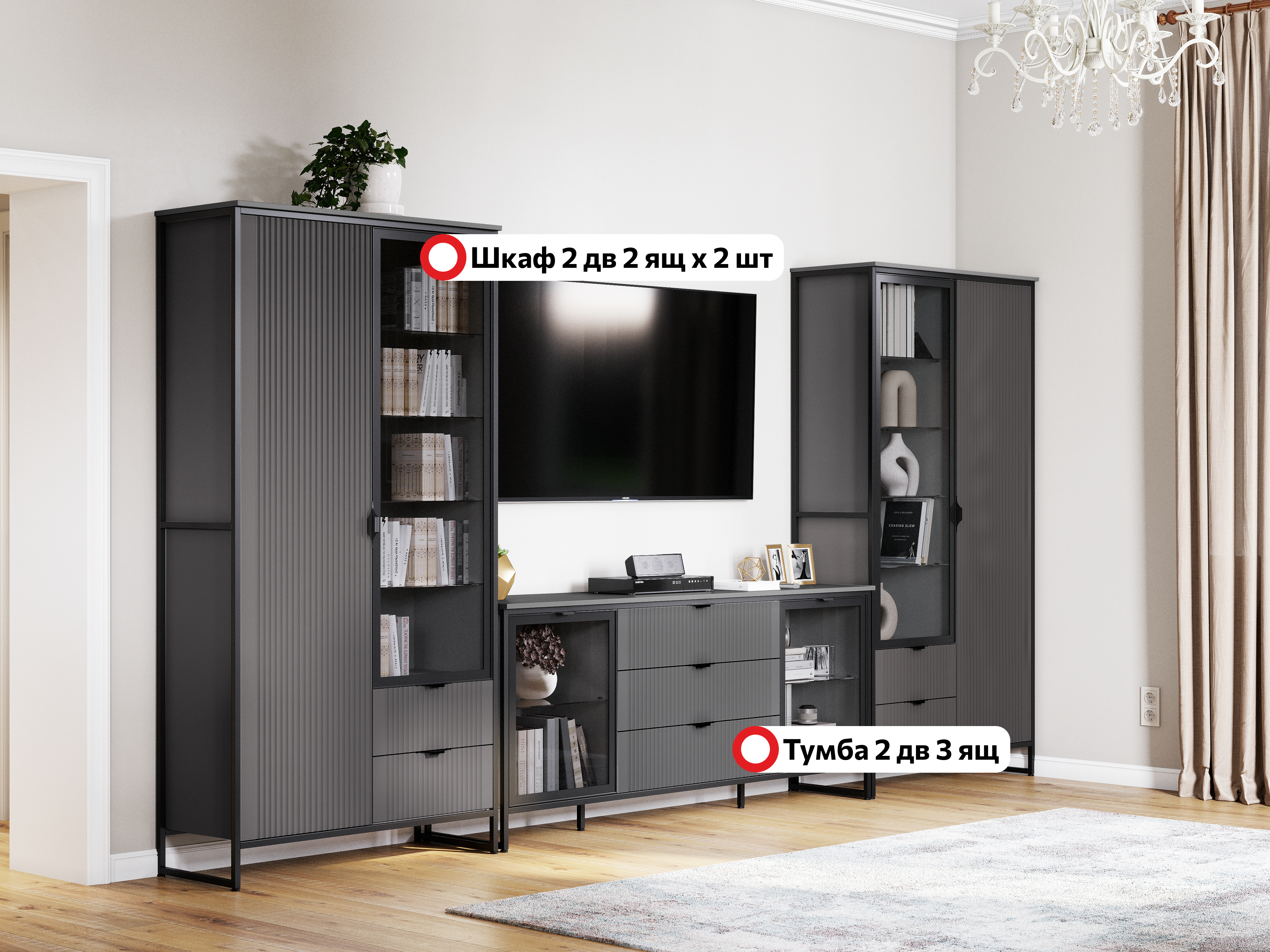 Тумба 2 дв 6 ящ "Нора" гостиная с глухими дверями Графит