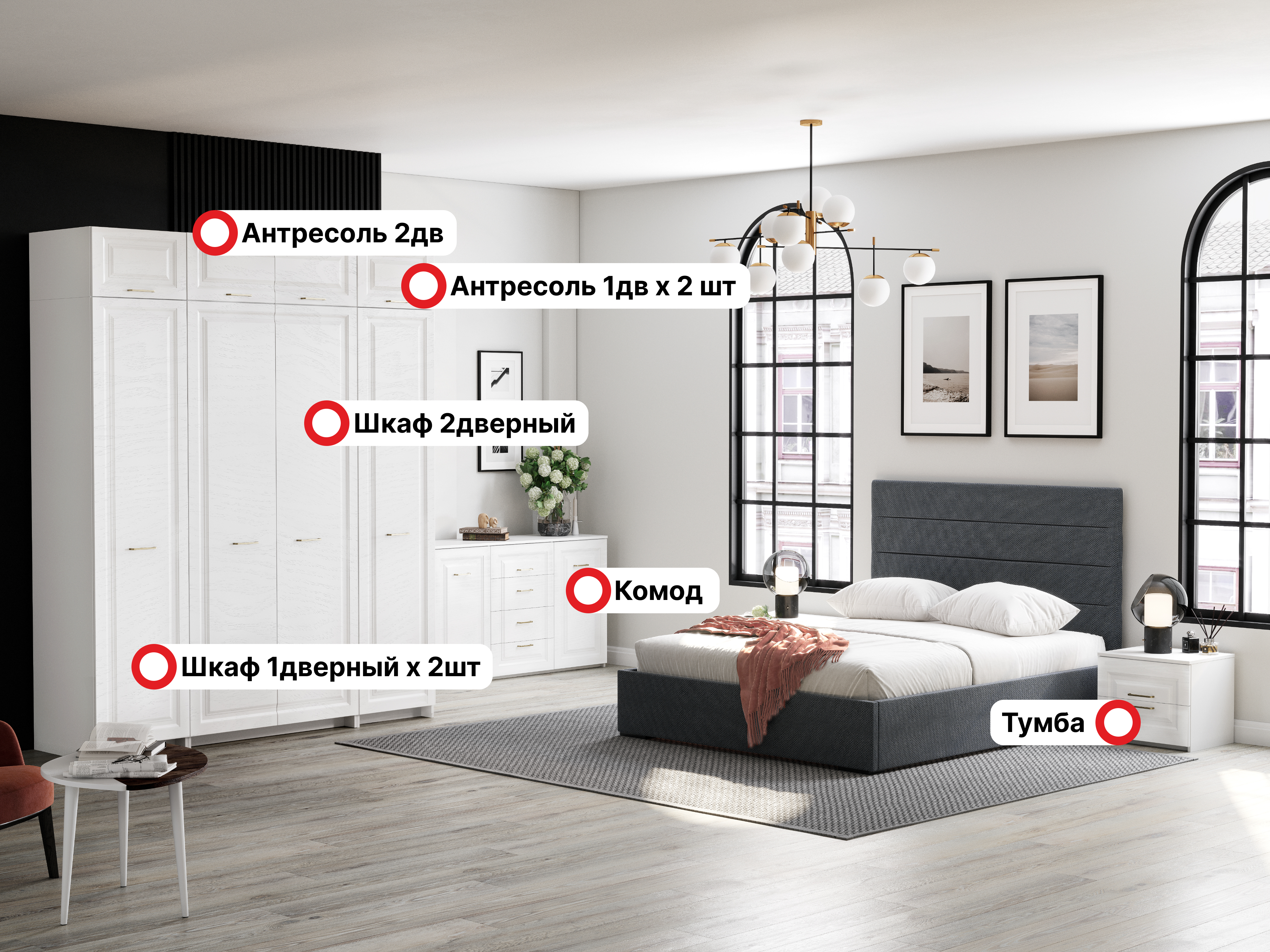 Спальный гарнитур "Манхэттен" обеспечивает комфорт и уют в спальне, создавая идеальное место для отдыха и сна. А благодаря компактности останется место и для других функциональных предметов, которые обязательно должны быть в комнате.
